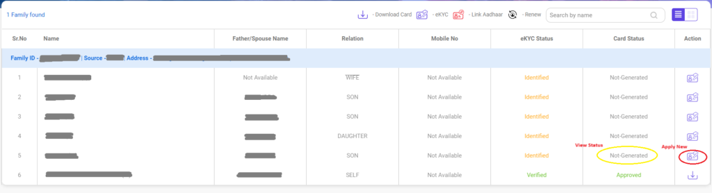 સ્ટેપ 4: જેને કાર્ડ બનાવવું છે તેના નામ સામે eKYC પર ક્લિક કરો