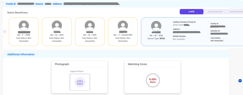 અહીંથી તમારી મહત્વની પ્રક્રિયા શરૂ થાય છે. પરિવારમાંથી કોઈપણ સભ્ય પસંદ કરો અને eKYC બટન દબાવો.