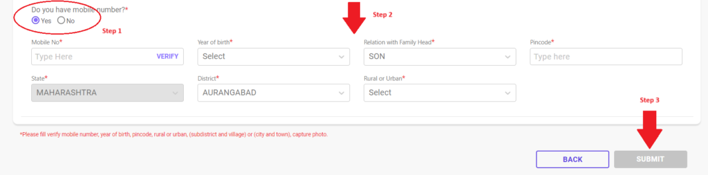 સ્ટેપ 7: મોબાઇલ નંબર અને જરૂરી માહિતી દાખલ કરો